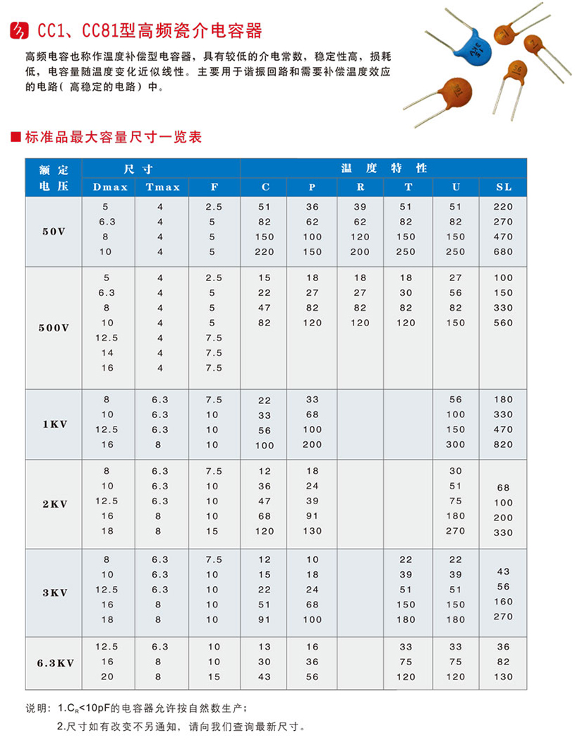 - CC1係列為一類高頻低壓成人免费看片91電容器,用在低損耗和電容量高穩定性的地方或用在要求溫度係數有明確規定的地方。如:諧振回路、高頻旁路、溫度補償、控製電路時間常數的元件,穩定性要求高的耦合元件。CC81係列為一類高頻高壓成人免费看片91電容器,用於UR≥0.63KV以上的高壓諧振電路中,或用在低損耗和電容量穩定性的地方或用在要求溫度係數有明確規定的地方。